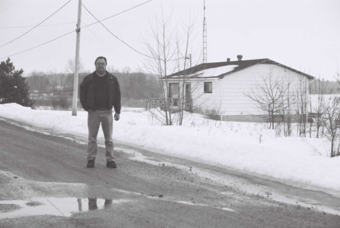 William Owl Jr. injured his neck and back while working as a mechanic and later developed fibromyalgia from that injury. He is no longer able to do construction work, or the trapping and fishing he used to enjoy. Here he is standing on the road in Cutler, in front of one of the many houses he helped to build on the reserve.