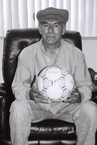 Ivan Mejia injured his back in a workplace accident several years ago. He was an avid soccer player and can no longer play the game because of his injury. Toronto, Ontario. July 2002.